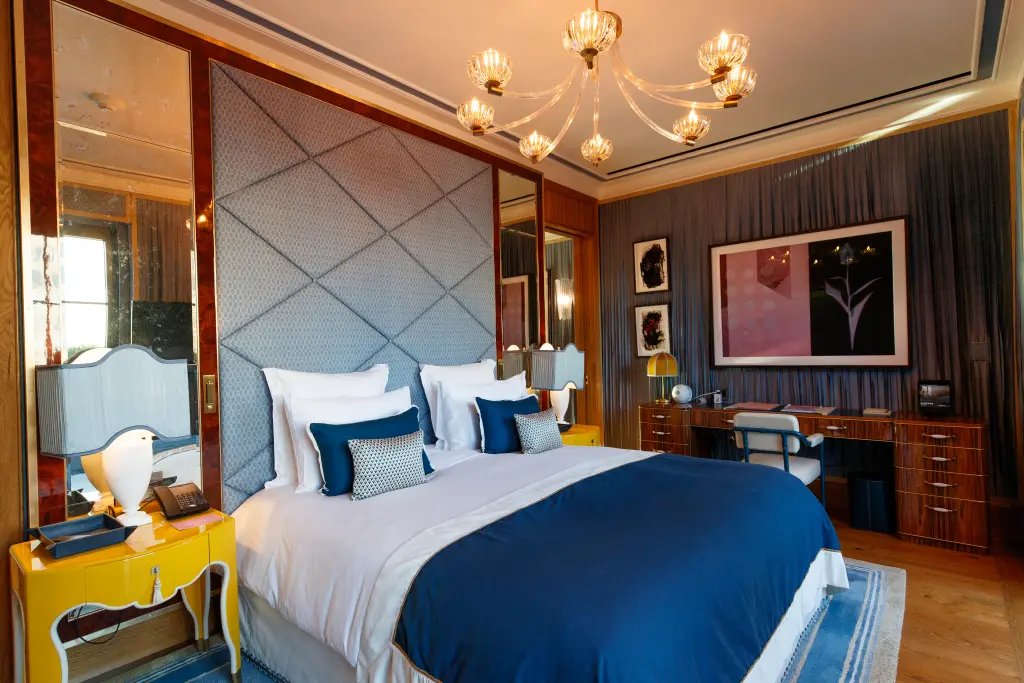 The two-story penthouse, the largest suite in the hotel, was conceptualized by internationally acclaimed Swedish interior designer Martin Brudnizki and has a starting rate of $22,000 a night.
