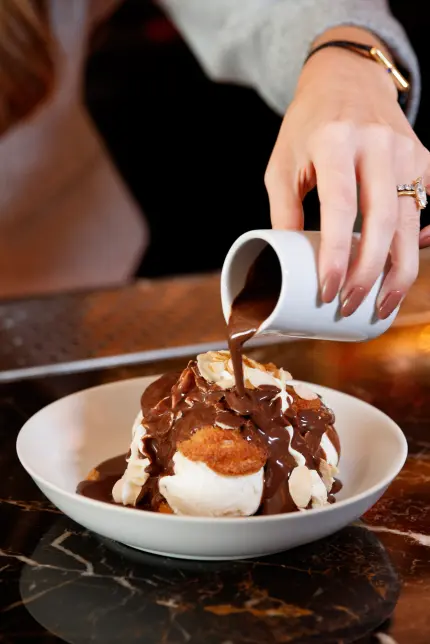 While high-profile guests are drawn to the cocktail lounge’s intimate ambiance and popular pornstar martini (a balanced blend of vanilla vodka and passionfruit served with a sidecar of champagne) the venue’s fine dining restaurant, Brasserie Fouquet’s, doles out indulgent French bistro bites like burgers and fries, French onion soup and chocolate-drizzed profiteroles.