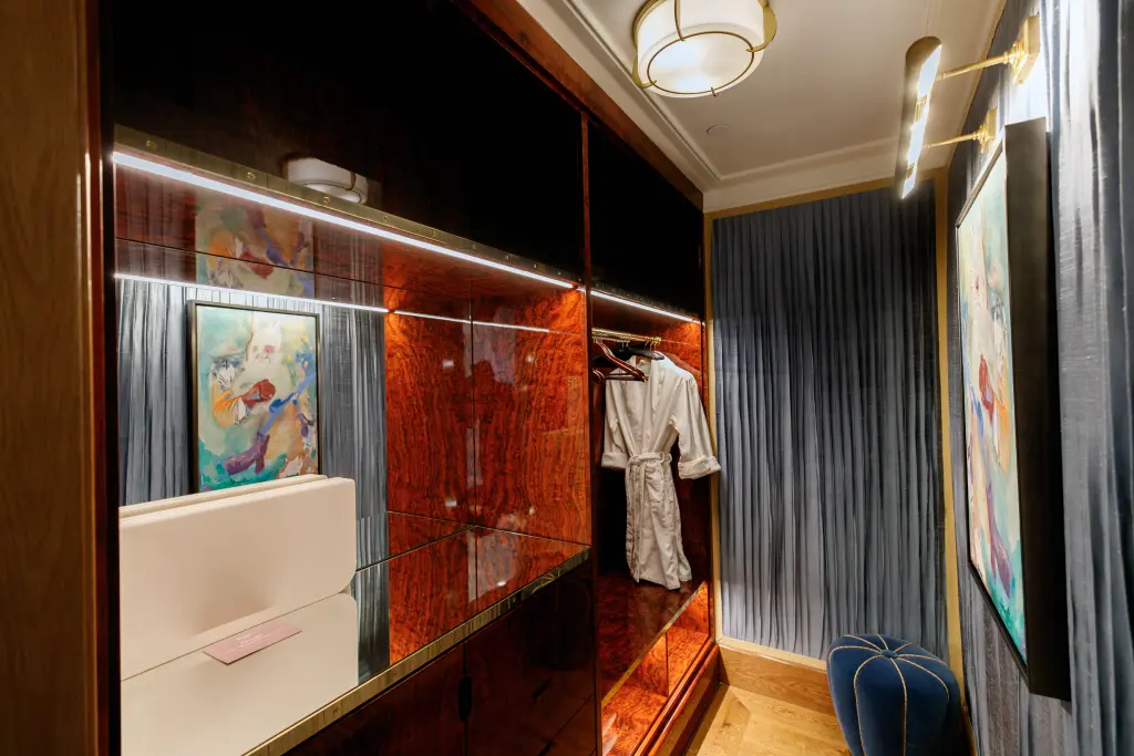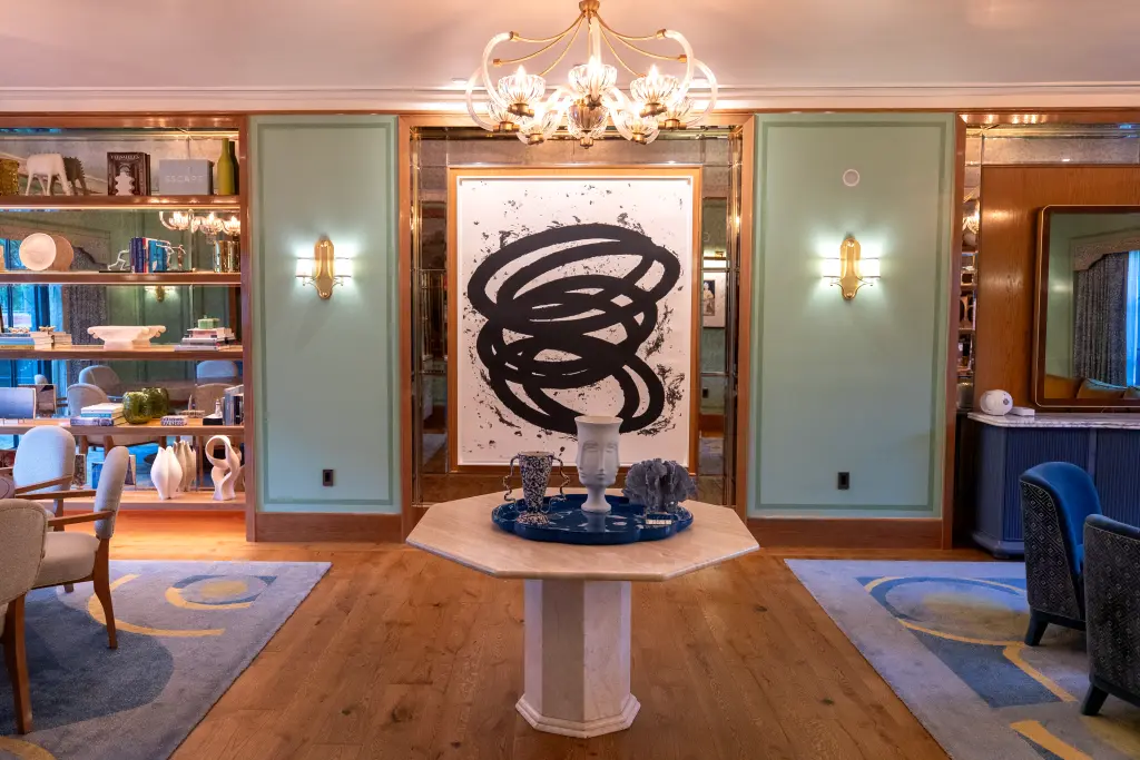 “The suite has an insane art collection,” Menechella Bello said, motioning toward a large, abstract Richard Serra painting hanging as the focal point of the living-dining area. Natalie Choy was the mastermind behind the penthouse’s art curation, while all other suites were dreamed up by Saatchi Art.
